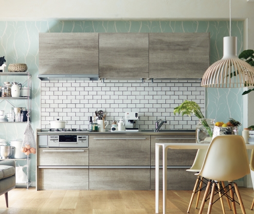 グレイッシュな木目柄が落ち着いた空間をつくります。 |