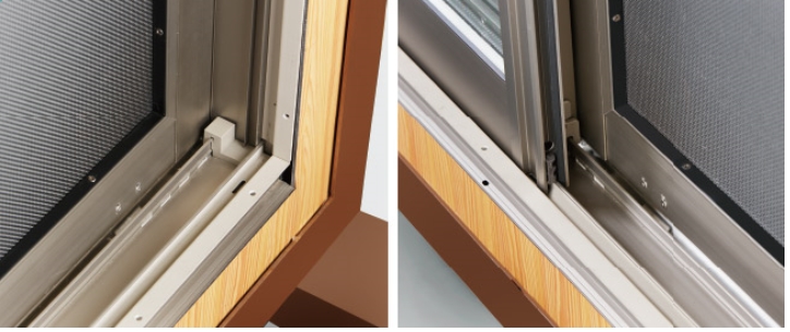 | ㈱長尾木鋼/ソリッドフロー 補強レールを増設し、スムーズな動きを実現。内部からのはずれ止め部品によって、 より高い防犯性を備えています。 |
