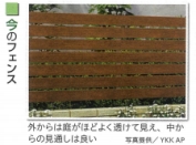 | 今の家は、フェンスをつけない家庭もあるほど開放的。 フェンスがある場合も、低い位置で、スリットなど見通しの良いものが主流です。中から見えやすく、外からは見えにくいスリットなら、さらに防犯性がアップ。家の向きを考慮してつければ、プライバシーも守られます。 ブロック塀は、光や風も通すフェンスへと移り変わってきたのです。 |