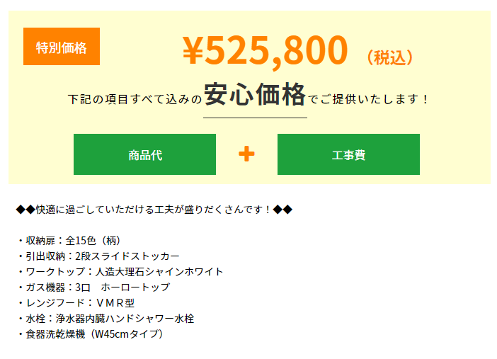 ・キッチン設置位置の条件については旧キッチンと同じ位置関係での施工となります。