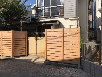 | お客様のご要望 | 劣化しやすい木部フェンスではなく劣化しにくいフェンスに変えてほしい。 既存の門戸は交換しないのでなるべく色味を合わせたフェンスにしてほしい。 |