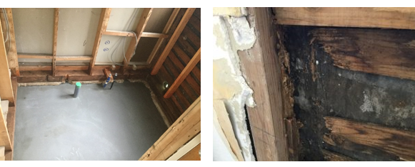 周辺の下地もあたらしく組み直しました。(解体工事をした時の画像です。割れたタイル、浴槽周辺から漏水しており、下地の木材が腐食)