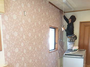 壁紙もキッチンに合わせて柄のあるものを選びました。