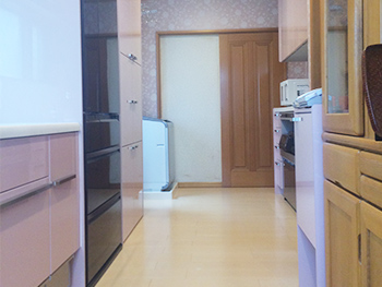 | ご提案内容 | リフォーム前の木目調の落ち着いたキッチンから、温かく柔らかいキッチンに生まれ変わりました。 |