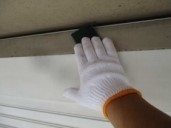 2)一般塗装部 ■雨樋 破風板 雨戸板 :全体的に劣化・汚染進行中塩ビパイプ紫